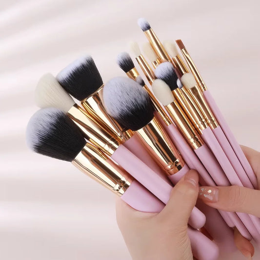 Custom 15-Piece Vegan Synthetic Pink Makeup Brush Set High Quality Product