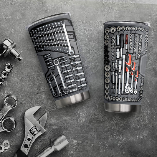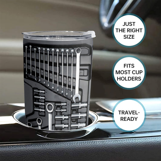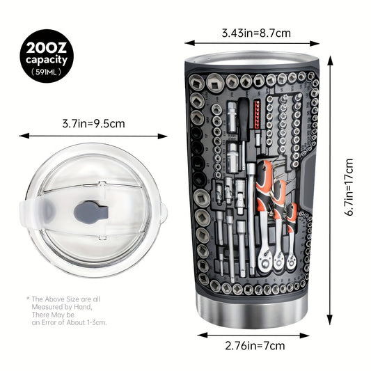 1pc 20oz Vacuum-insulated Coffee Mug, Mechanic Tool Graphic Printed Tumbler With Lid, Stainless Steel Travel Mugs With Lid, Double Wall Cups For Cold & Hot Drinks