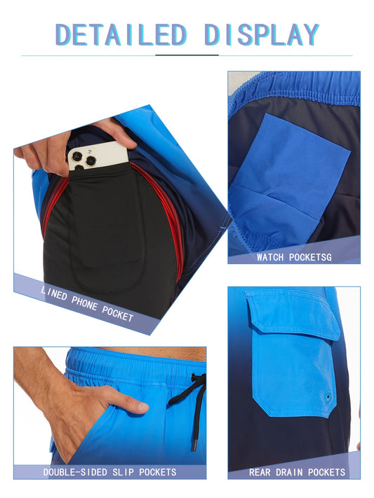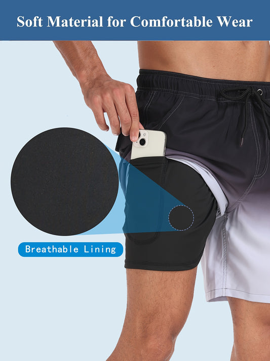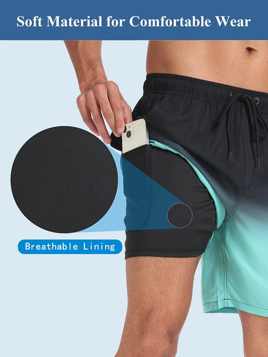 Men's Gradient Beach Shorts - Quick-Dry, Drawstring Waist, Pockets, Polyester, Ideal for Summer Activities & Casual Wear, Casual Summer Shorts|Summer Fashion Shorts|Lightweight Shorts