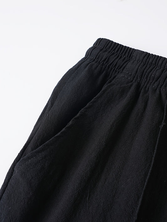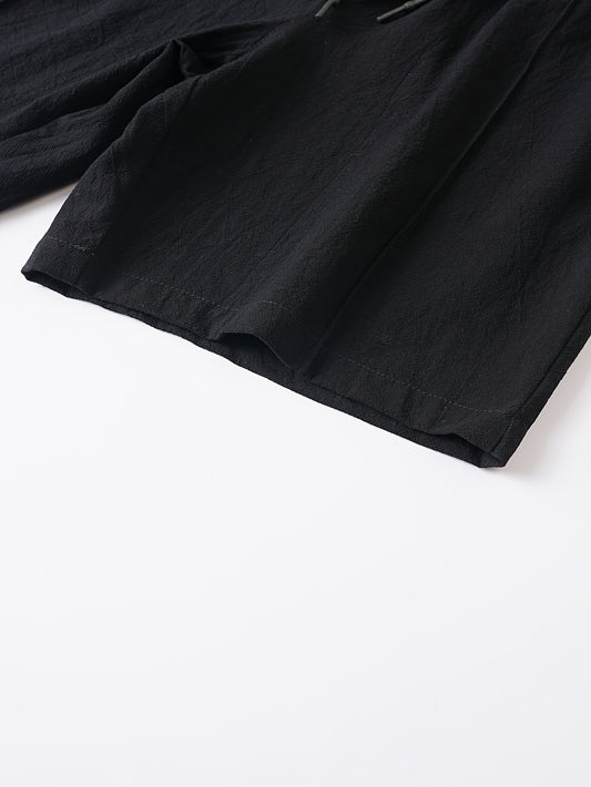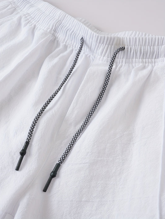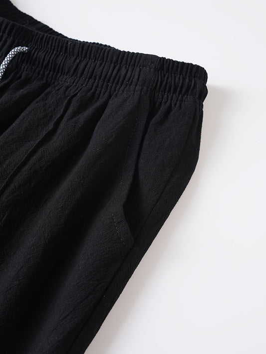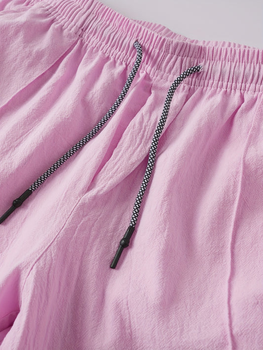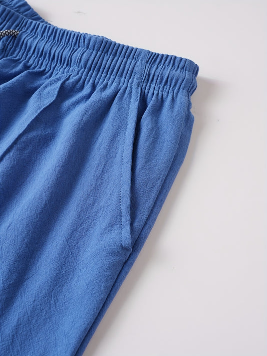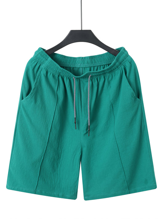Men's Summer Shorts, Drawstring Elastic Waist, Straight Leg Solid Color Breathable Casual Beach Capri Pants - Three-Pack