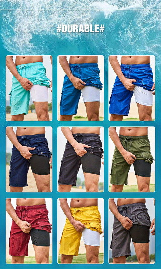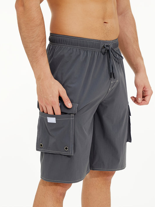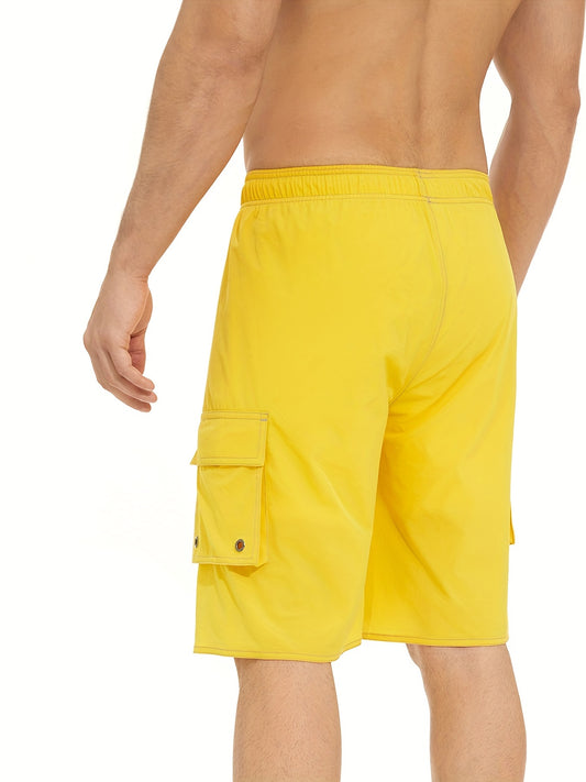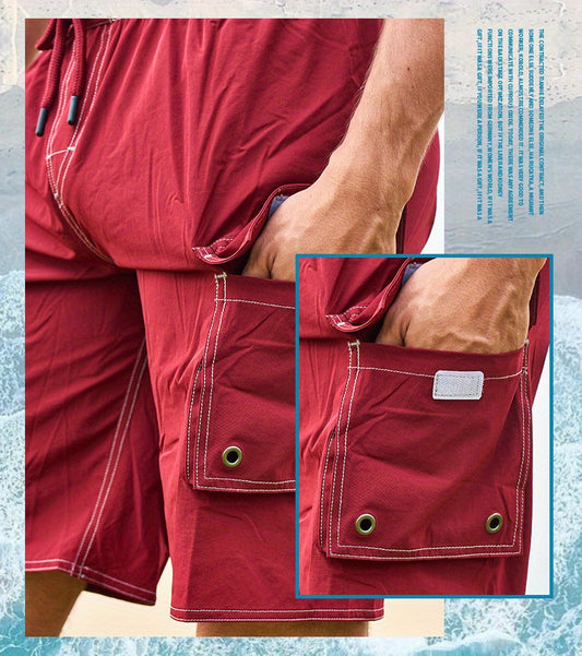 Men's Quick-Dry Swim Shorts with Adjustable Drawstring Waist & Pockets - Sporty Solid Black Beach Shorts for Swimming, Surfing, Water Sports - Machine Washable Regular Fit, Swimming Gear | Sleek Construction