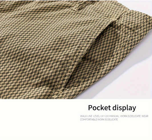 Men'S Casual Cargo Shorts with Striped Design, Elastic Waistband & Multiple Pockets - Beige/Black Regular Fit for Outdoor, Sports & Casual Attire (Belt Not Included), Outdoor Apparel, Functional Pockets, Nonelastic Fabric