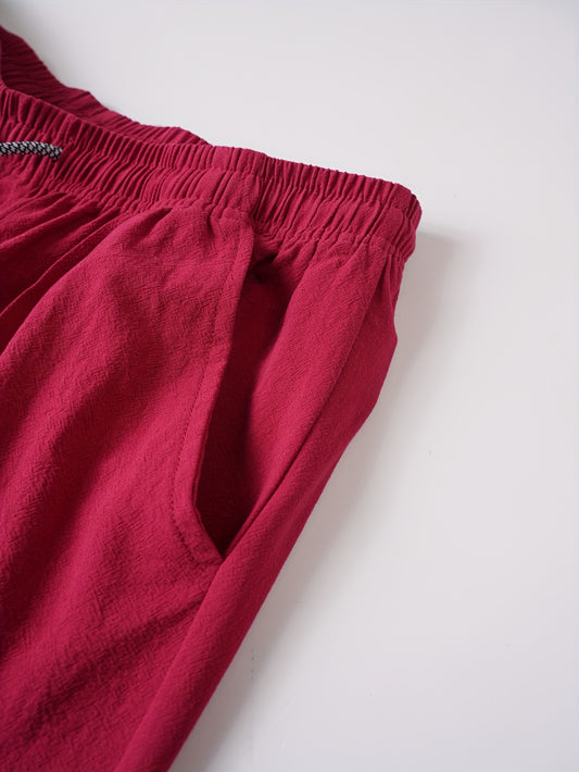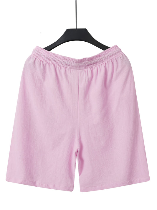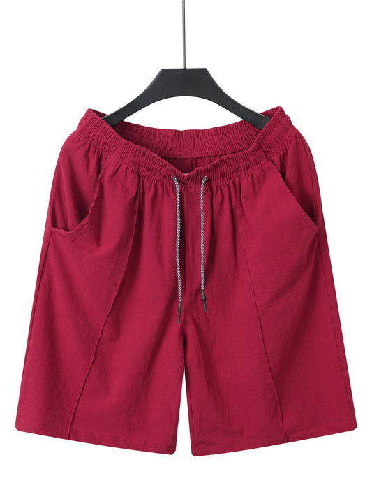 Men'S Casual Knee-Length Shorts - Breathable Loose Fit with Elastic Drawstring Waist, Solid Color Regular Fit for Travel, Home & Sports -Sports Shorts | Casual Style