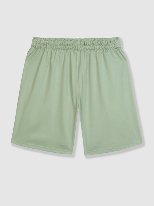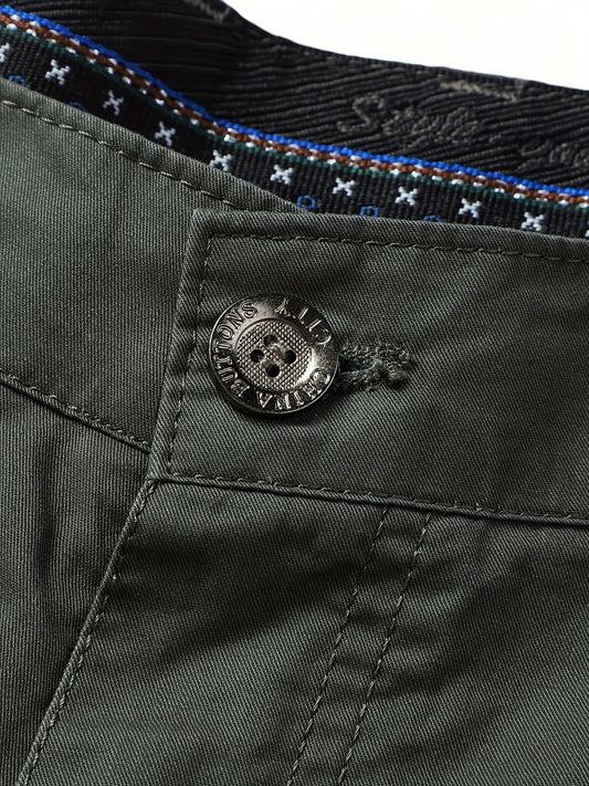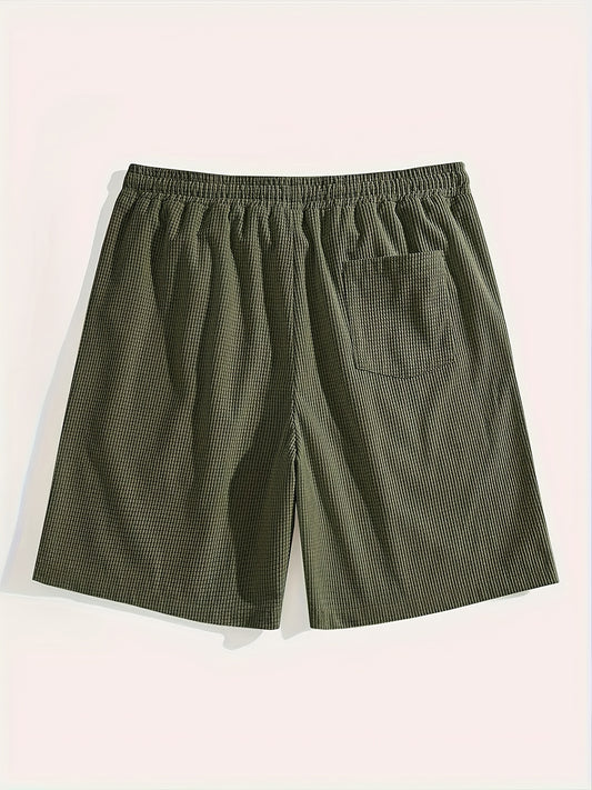 Men's Summer Micro-Elastic Casual Shorts - Four-Tenths Length, Olive Green, Mid-Rise Waist, Elastic Waistband, Side Pockets, Lightweight & Breathable for Casual Attire