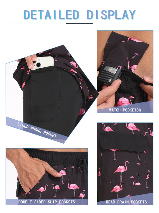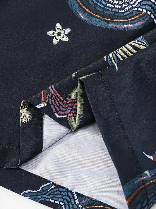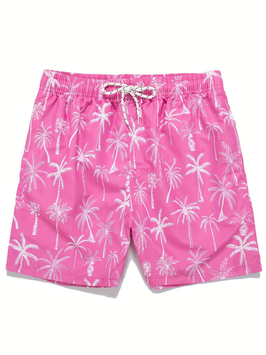 Men's Quick-Dry Beach Shorts with Tropical Palm Tree & Palm Leaf Print - Breathable Stretch Fabric for Summer, Outdoor, Hiking, Swimming - Machine Washable Casual Athletic Shorts, Outdoor Activewear, Summer Shorts