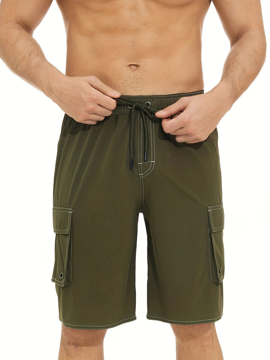 Men'S Big & Tall Quick-Dry Swim Trunks - Olive Green Beach Shorts with Adjustable Drawstring, Pockets, and Durable Polyester Fabric for Summer, Summer Swimwear | Adjustable Drawstring Shorts | Quickdry Material, Bathing Suits
