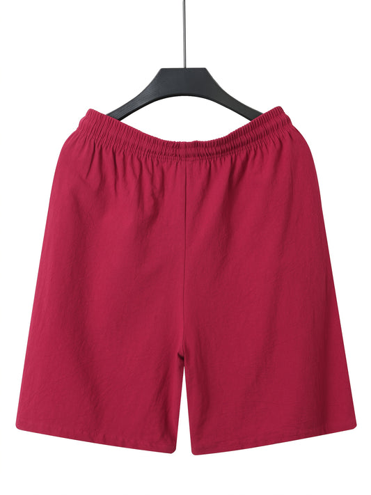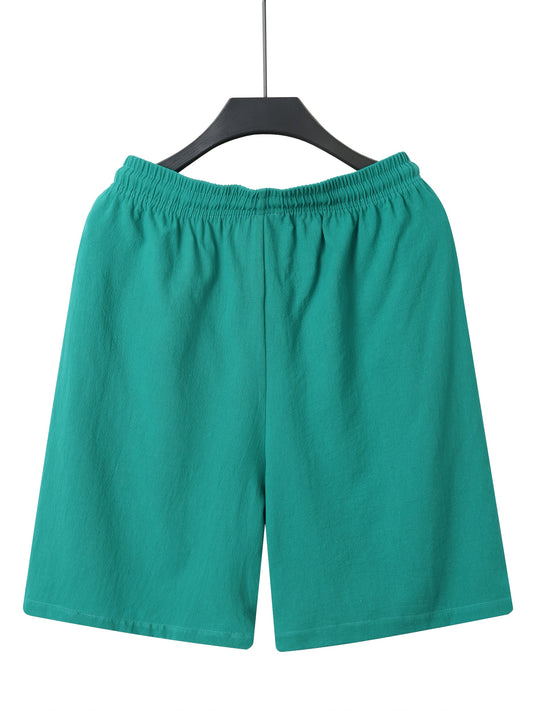 WW-MMDK Men'S Linen Shorts - Regular Fit, Solid Color, Non-Stretch, with Pockets, Ideal for Beach & Casual Wear, Beach Shorts | Sporty Linen Shorts | Woven Texture