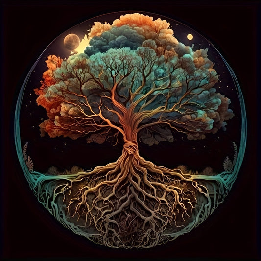 Quadro 5D DIY Diamond Painting – Pôr do Sol com Grande Árvore