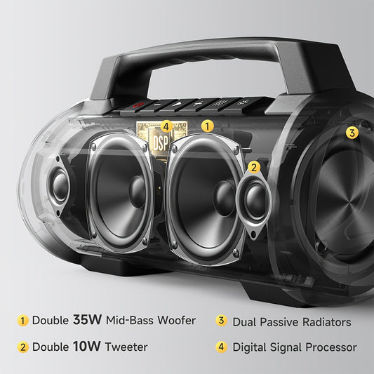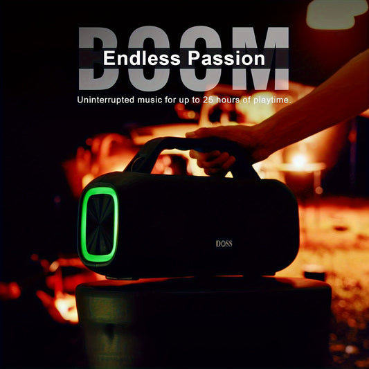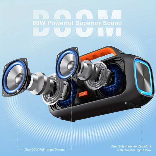 DOSS Extreme Boom S Portable Speaker, Wireless 5.3 with 60W Stereo Sound, Rich Bass, IPX6, 25H Playback Time, TWS, LED Lights, Suitable for Camping, Beach, Pool Outdoor Speakers - 507S