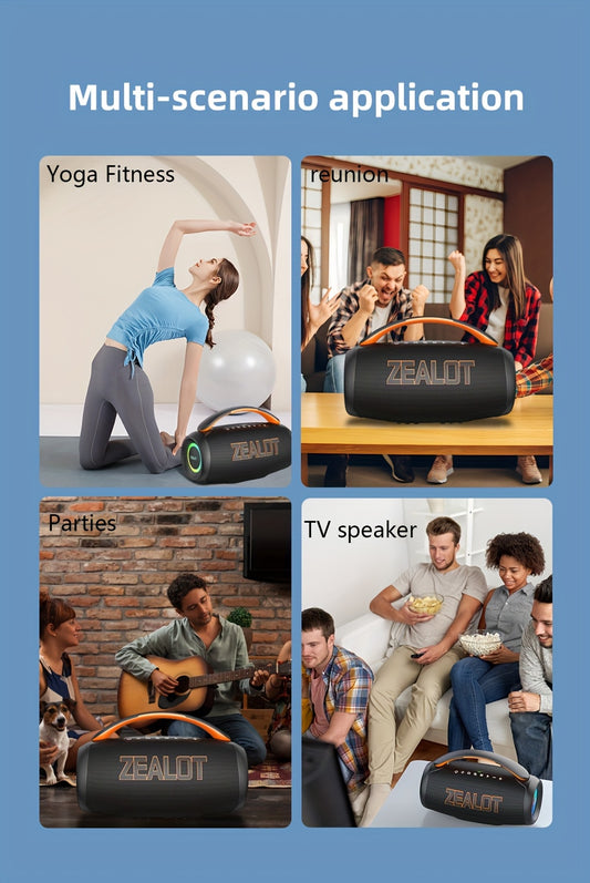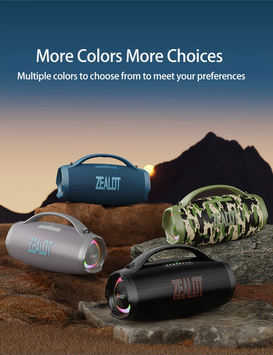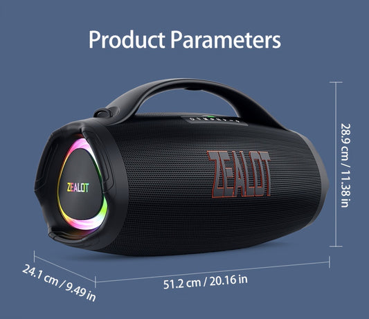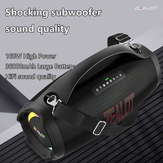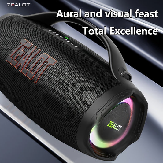 ZEALOT S98 160W Power Amplifier Wireless Speaker, Outdoor Portable, IPX5, with RGB Colorful Lights, 3 Different Sound Experiences with EQ Modes, Up to 8 Hours Playback, Supports Mobile Phones, Tablets, Computers, TV. SD, USB,