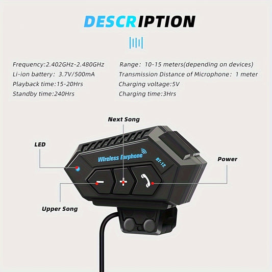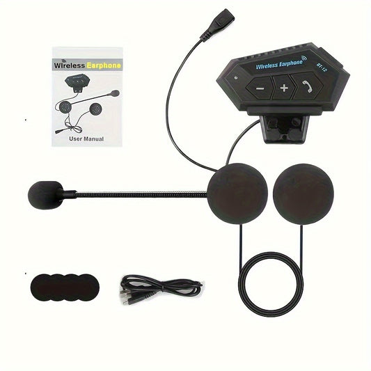 Wireless 12, Wireless Motorcycle Helmet Earphone Headset Hands-free Call Kit Stereo Music Player Speaker