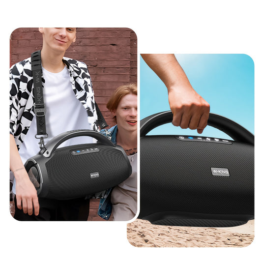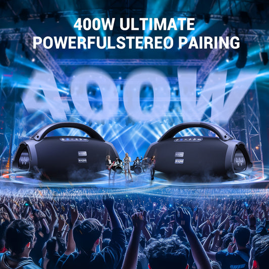 Powerful W-KING 200W peak wireless speaker with massive 120dB soundstage and DSP chip, 12-level bass adjustment, Big Party Boombox portable speaker with super deep bass, dynamic light show, 6.35mm microphone input, TF card sl