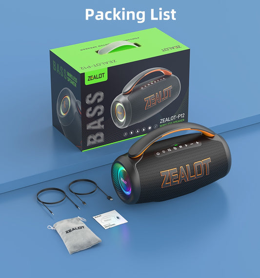ZEALOT 60W Subwoofer Speaker, Wireless Speaker with Handle, 8000mAh Battery, Easy to Carry, RGB Lights, EQ Mode, TWS Pairing, Booming Bass. IPX5 High Quality, Great for Parties And Gatherings. for Home, Car, Camping-ZEALOT P1