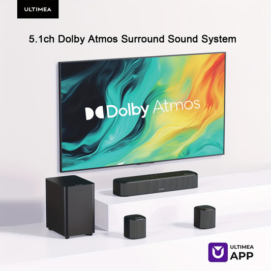 ULTIMEA 5.1ch Sound Bar with Atmos, Surround Sound System for TV, Home Theater Sound System, 2 Surround Speakers with Subwoofer, App Control, 121 EQ Presets, CEC Sync, Bass Boost, Bluetooth 5.3, HD EARC/Opt/AUX, Wired Sound B