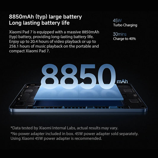 Xiaomi Pad 7 WiFi Tablet 8850mAh Battery 144Hz 11.2'' Screen Quad Speakers Tablet 45W turbo charging Dolby Vision, Wireless Communication, Type-C Port Charging, Android LCD Display, Rechargeable Battery