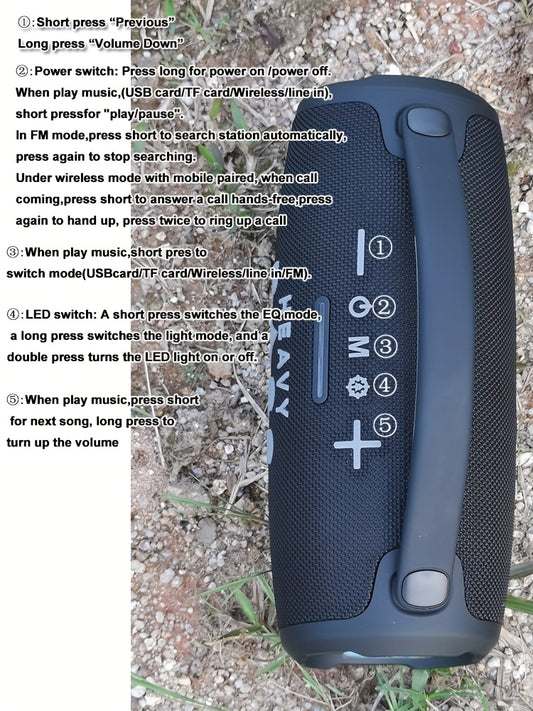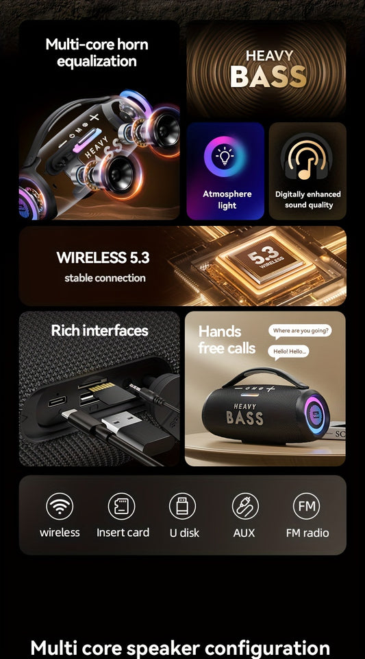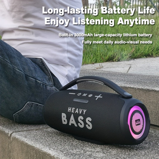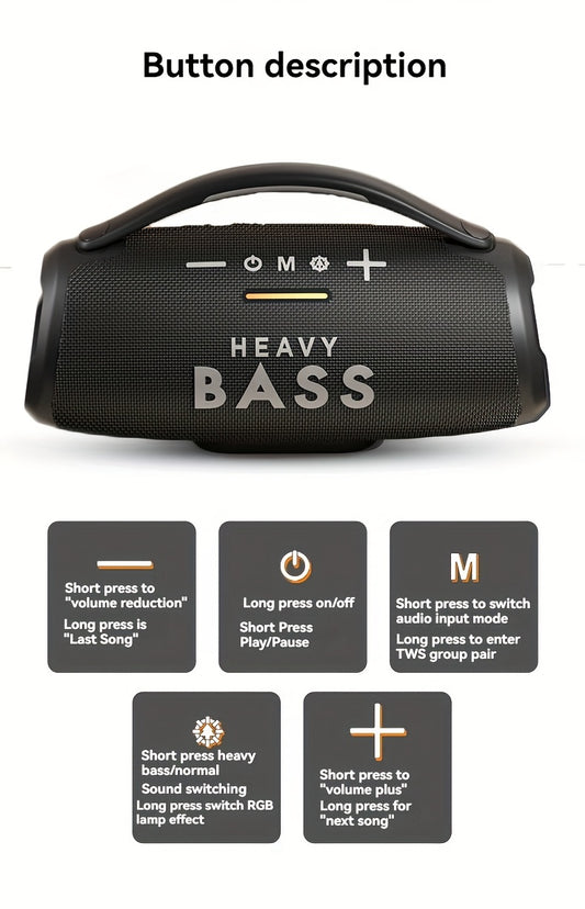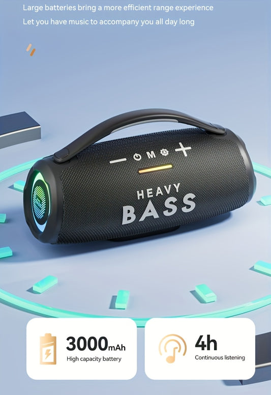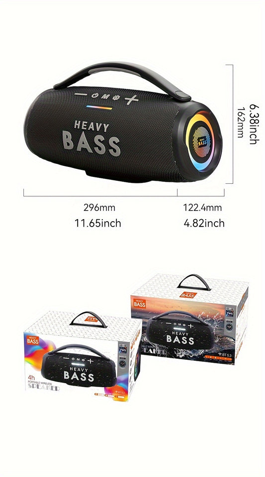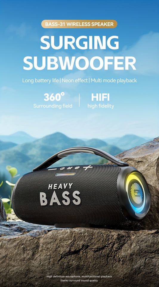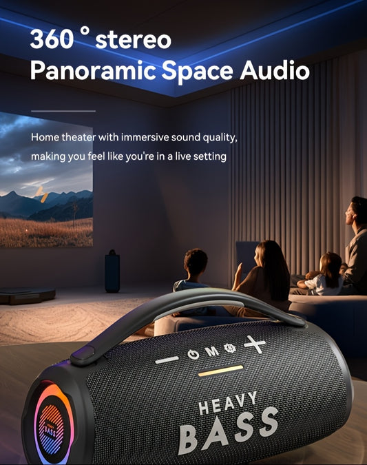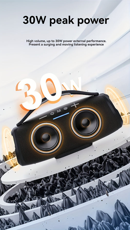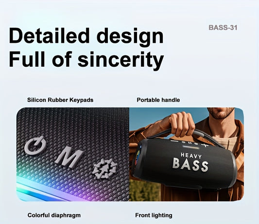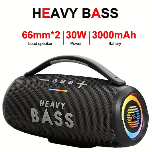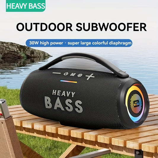 HEAVY BASS 30W Wireless Speaker with Subwoofer, USB-C Charging, Wireless, Built-in Mic, Portable PA System for Home Theater, Camping, Parties - Compatible with PC, Tablet, Smartphone, USB Drive - Ideal for DJs, Presentations,