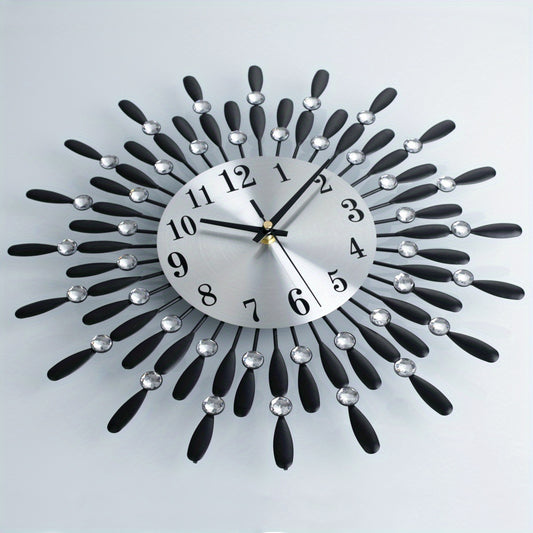 1pc 14.56 Inch Black Small Wall Clock For Living Room Decor, Modern Metal Wall Clocks For Kitchen Bedroom Office Decor, Non-Ticking Quiet Wall Clock Easy To Read