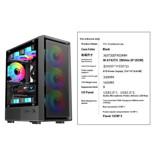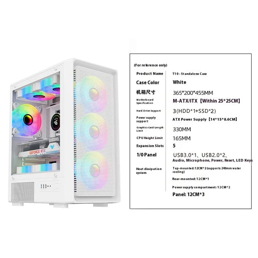 T10 Nine-Tailed Fox 240mm Water-Cooled Glass Side ATX/DIY Shell Matx Desktop Computer Case for Gaming Transparent Side for