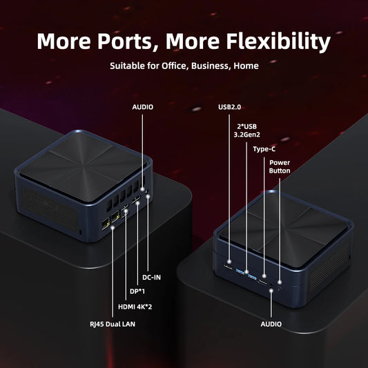 YCTipc AMD Ryzen 7 6800H 8 Core 16 Thread Mini Desktop 16GB DDR5 512GB SSD USB 3.2 Type C Dual HD-MI Business Mini PC