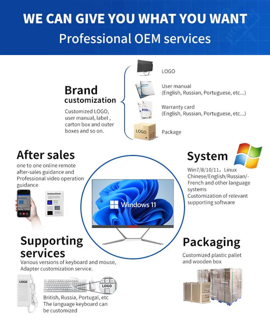 Factory New All-In-One 19''-23.8 Inch Desktop Computer with Optional 2-11th Gen Intel I5/I7/I3 SSD LCD IPS Quad DDR3 RAM