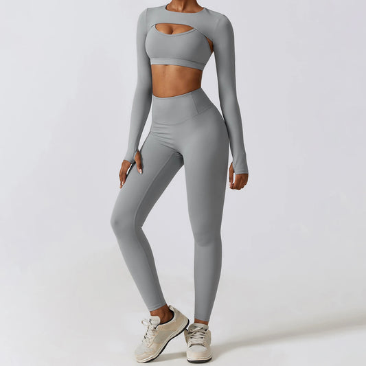 Conjunto de 3 Peças Fitness Feminino – Top Curto
