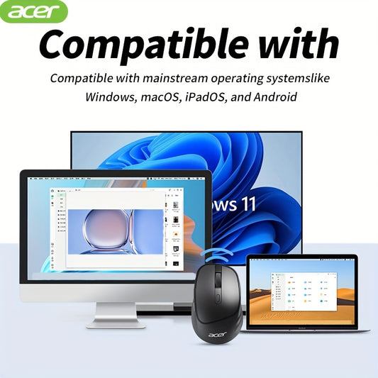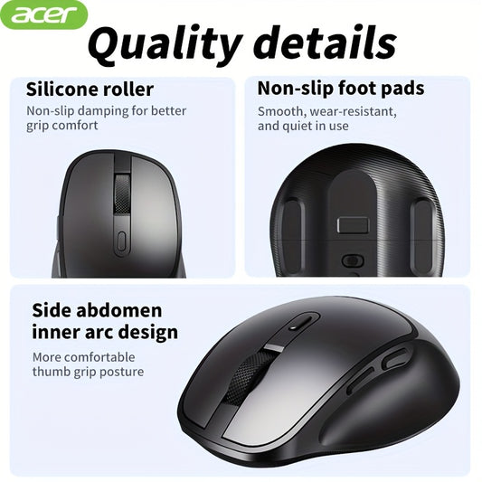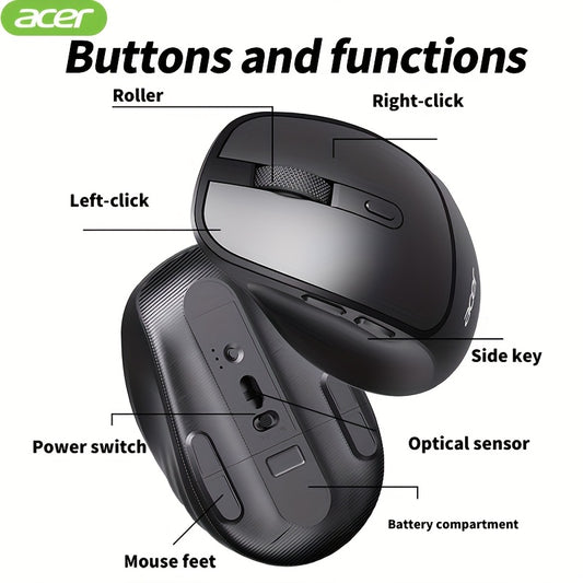 ACER Wireless Mouse, Ergonomic Silent Optical Mouse with Side Buttons, Low Latency 2.4G Wireless Mouse, Compatible with Windows/macOS/iPadOS/Android for Laptop, Computer, Office & Home Use, Home Office Accessory, Computer Nav