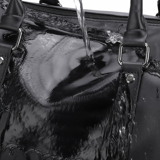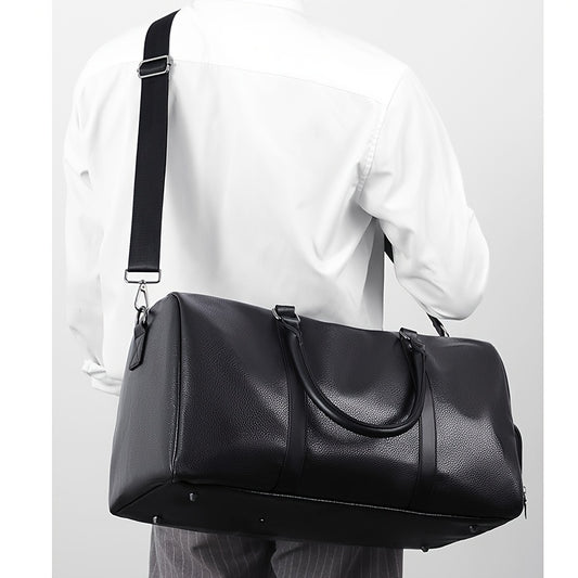 Large Capacity Gym Bag, Travel Duffel, Suitcase - Convertible Carry-On/Luggage with Zippered Front Pocket, Sturdy Handles - Compatible with TSA Locks - Business & Fitness Use - Elegant Black Synthetic -like Exterior - Easy-Cl