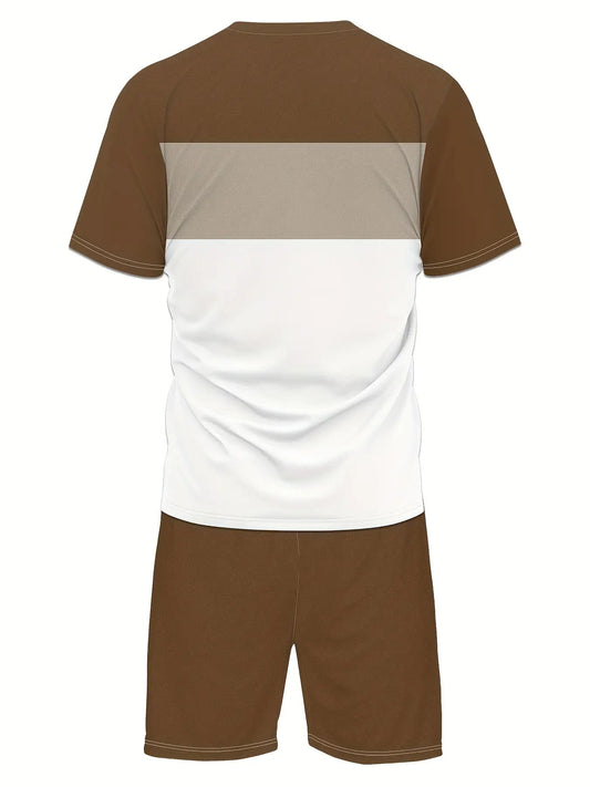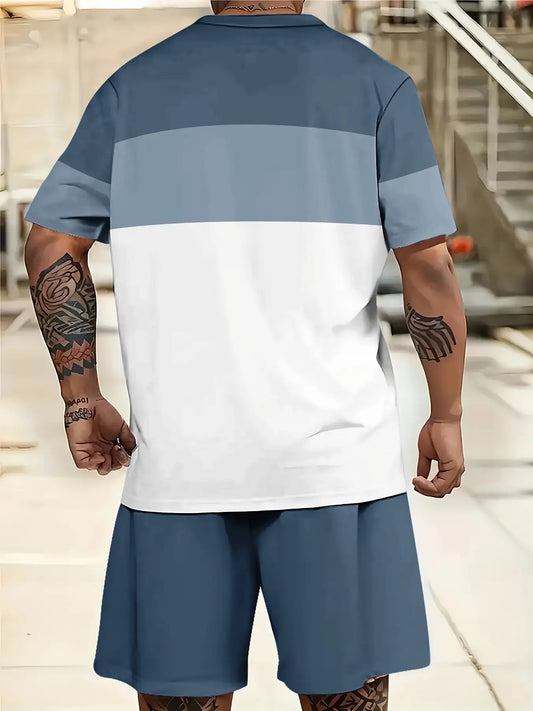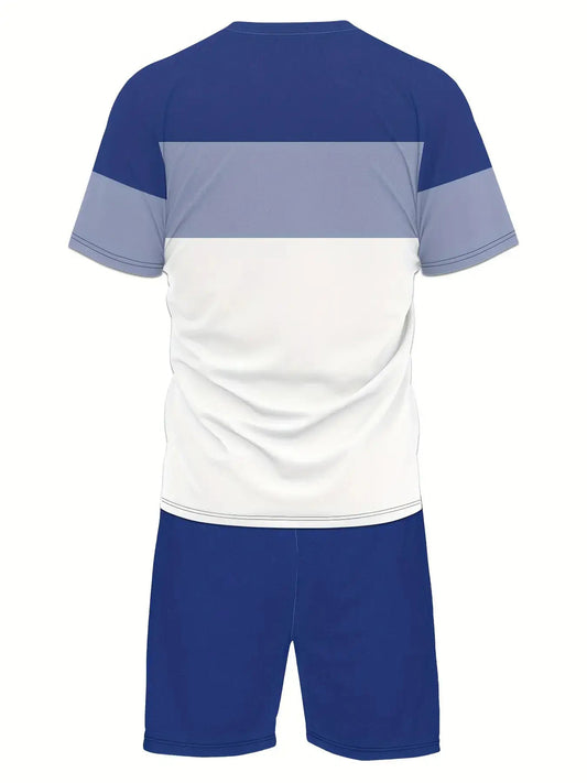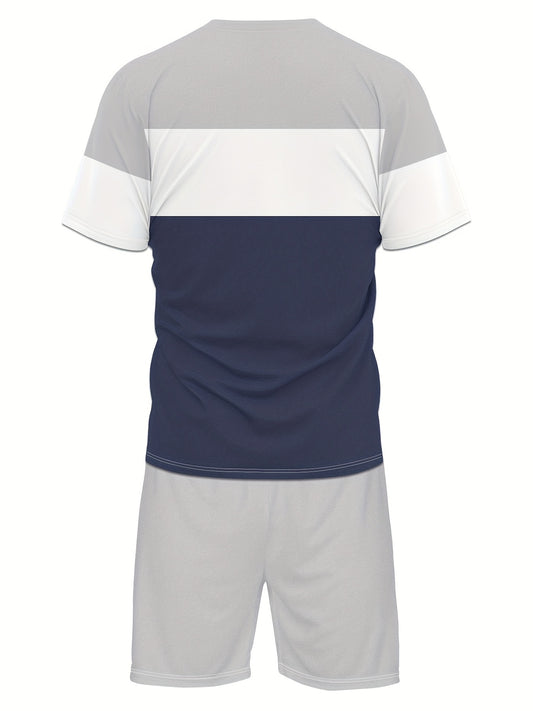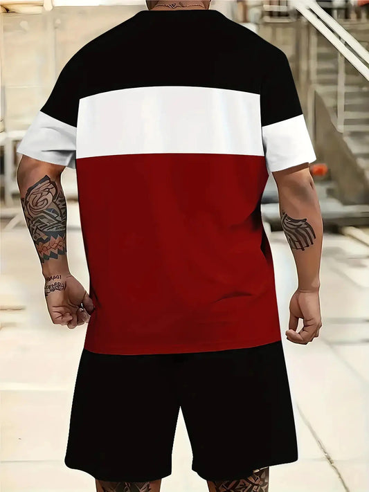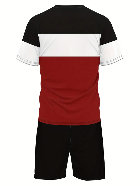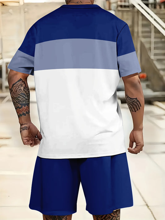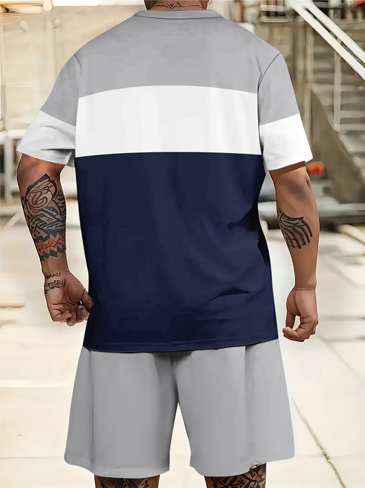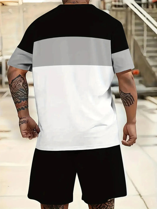 Men'S Plus Size 2pcs Sportswear Set- Black and White Color Block- BALAN Text Design- Lightweight Fitness Clothing Suitable for Running and Casual Summer Wear- Machine Washable Breathable Fabric Shorts and T-Shirt Set, Large S