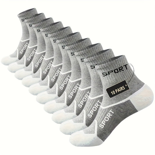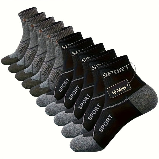 5 Pairs Men'S Low-Cut Athletic Socks with Cushioning & Breathable Mesh - Moisture-Wicking Gym Running Socks, Comfortable Ankle Support, Solid Color (Black/Gray/White) - Essential for Fitness & Casual Wear, Gym Socks, Workout
