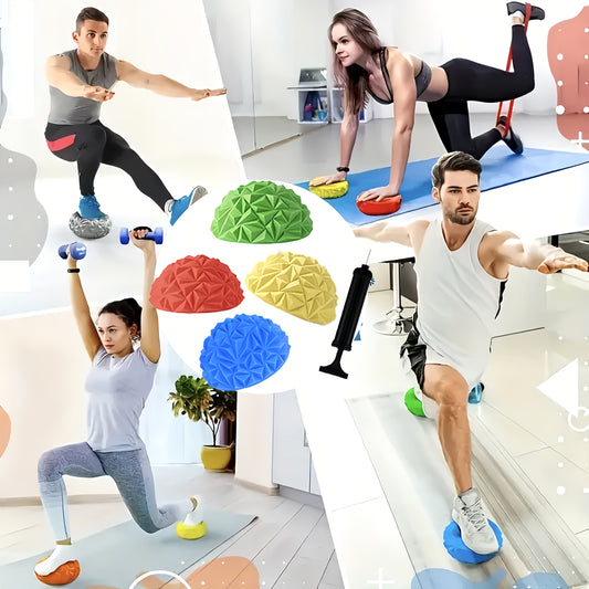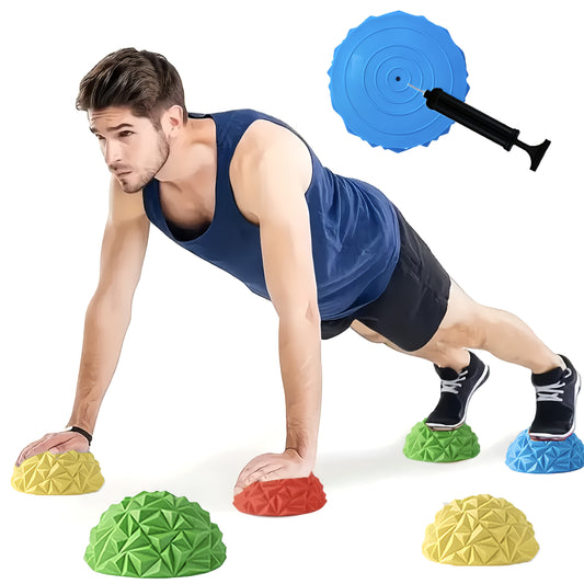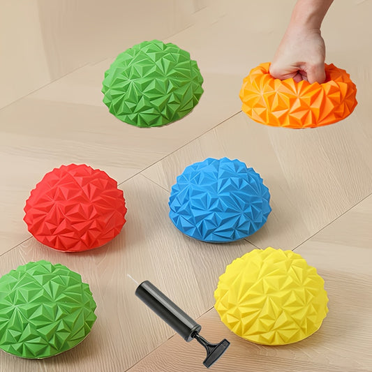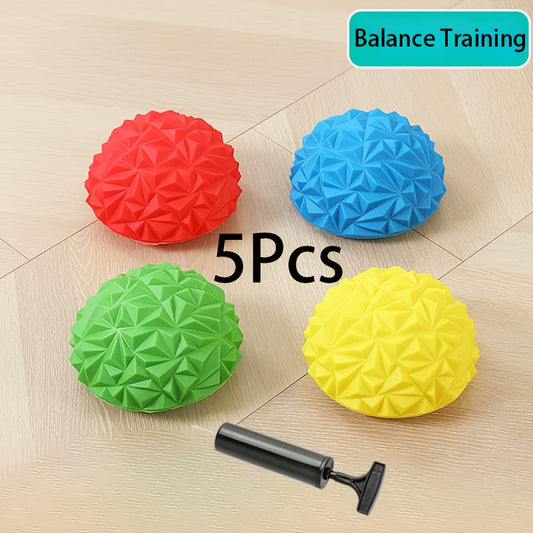 5pcs Non-Slip PVC Yoga Half-Ball Set with 4 Pineapple Massage Balls & Pump - Multi-Color (Red, Green, Yellow, Purple, Orange, Pink, ) - For Balance Training, Foot Massage, Pilates, Home Gym Workouts - Fitness Equipment For Me