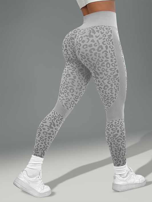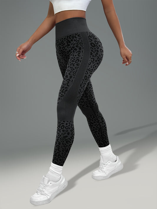 Women'S Leopard Print Yoga Pants - Non-Slip Workout Leggings with Elastic Waistband, Stretchy & Breathable Gym Pants for Yoga, Running, Casual Attire - All-Season Fitness Leggings in Pink & Leopard Print - Non-Slip Grip Activ