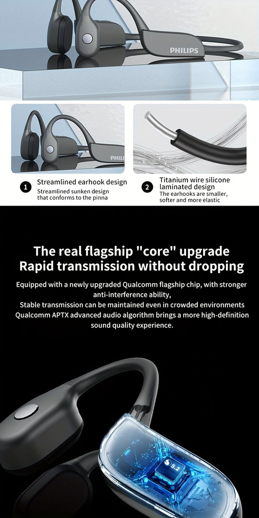 PHILIPS wireless open-ear non-in-ear headphones, sports running fitness cycling headsets, wireless ultra-long battery life hanging ear bone sensing TAA3609 AI call noise reduction, spatial stereo sound effect high-quality hea