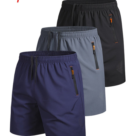 3pcs Men's Outdoor Sports Casual Shorts, Solid Color Zipper Pocket Running Fitness Quick- Breathable Athletic Shorts, Shorts For Men, Shorts For Men High Quality, Running Shorts Men, Gym Shorts Men, Workout Shorts, Sporty Des