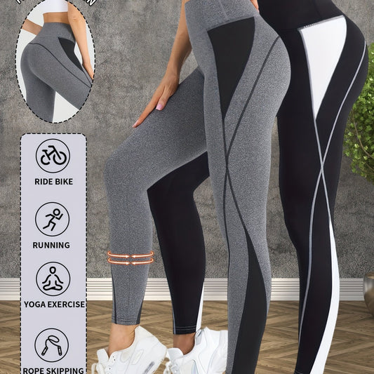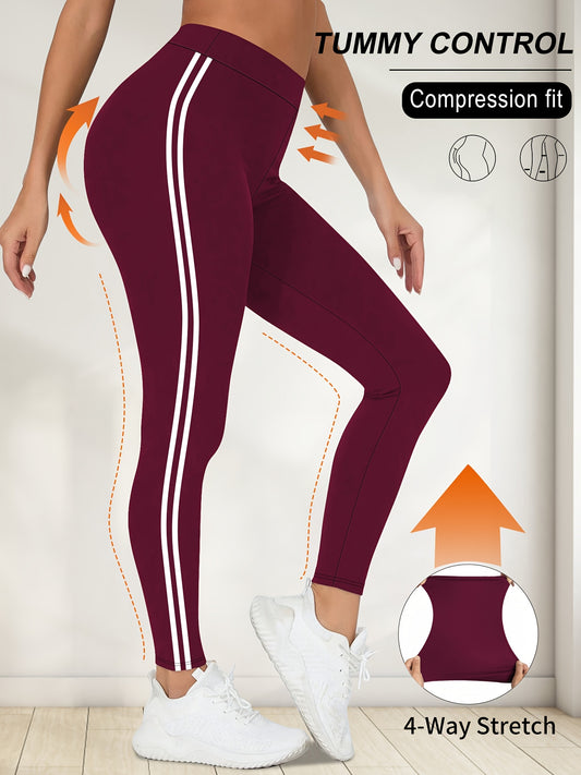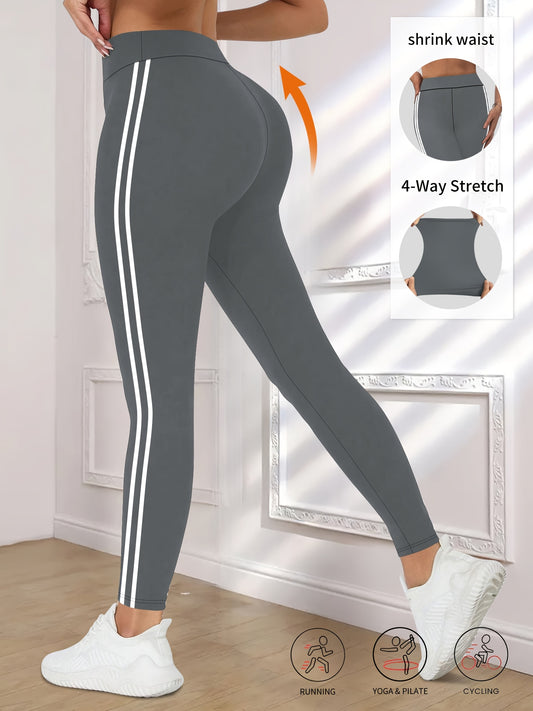 2pcs Women'S High-Waisted Yoga Pants - Side Stripe, Outdoor Sports Tights, Butt-Lifting Tummy Control Leggings, Comfortable Breathable Wide Waistband