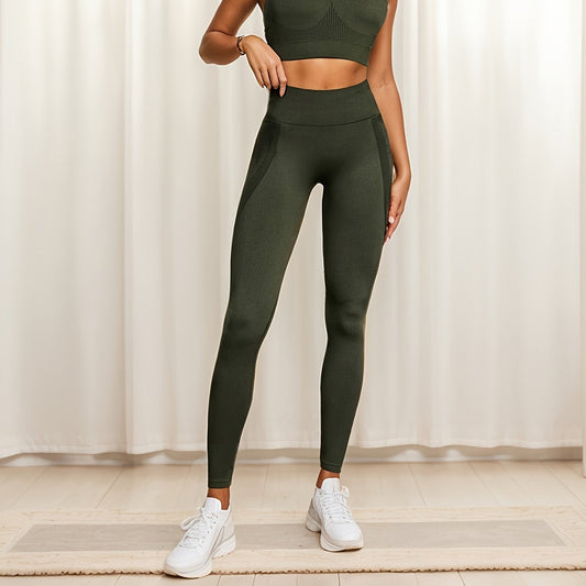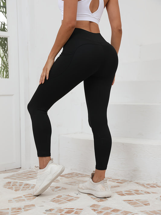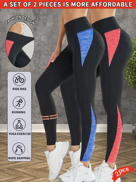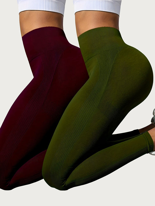 2pcs Women's High-Waist Yoga Leggings - Butt Lifting & Tummy Control, Breathable Stretch Fabric, Solid Color Workout Pants with Side Pockets for Outdoor Fitness