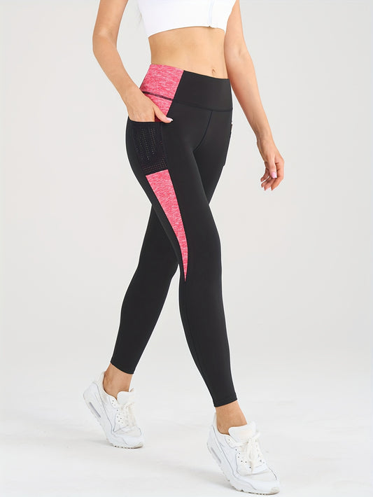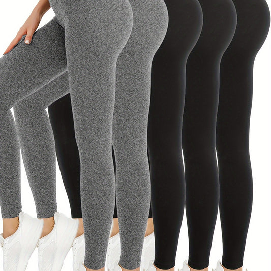 5pcs Women'S High-Waisted Yoga Leggings - Tummy Control Butt-Lifting Workout Pants with Breathable Moisture-Wicking Fabric, Color-Blocking Design & Pockets for Gym, Running, Outdoor Fitness, Gym Apparel, Sporty Style, Comfort