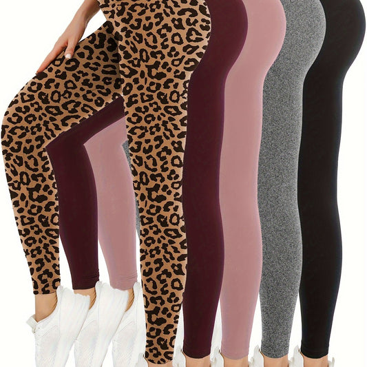 5pcs Women's High-Waist Yoga Leggings with Pockets - Ultra Soft, Tummy Control, Non-See-Through Workout & Running Tights