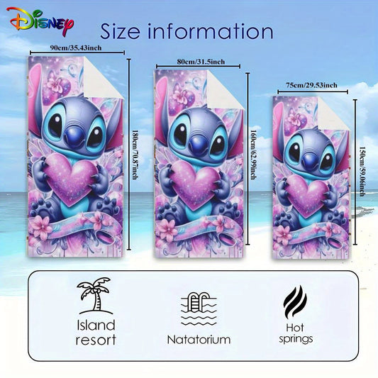 1pc Stitch Beach Towel - Large, Soft Polyester Microfiber Beach Mat with Cute Blue Alien Holding Pink Heart Design, Floral & Heart Patterns, Absorbent & Quick-Dry, Perfect for Yoga, Swimming, Travel, and More - Beach Accessor