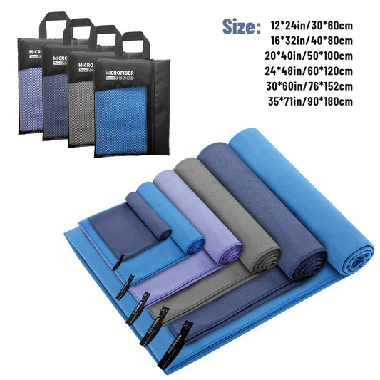 1pc Microfiber Quick-Dry Beach Towel - Super Absorbent & Soft, Portable Storage Mesh Bag, Multi-Size for Beach, Gym, Yoga, Bathroom - Vibrant Colors (Blue, Purple, Green, Pink), Beach Towel, Gym Essentials, Stylish Accessory,