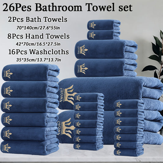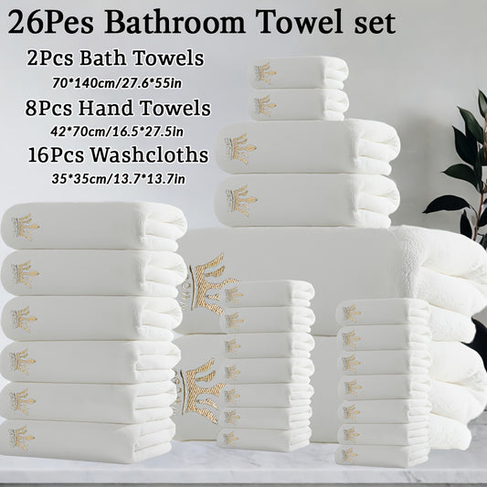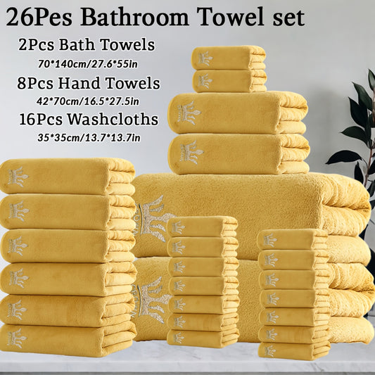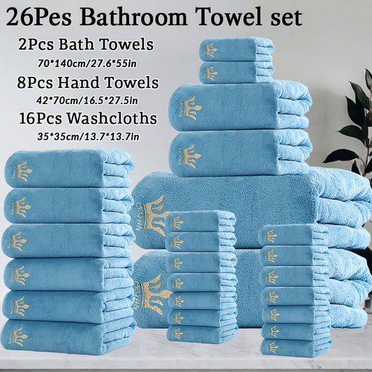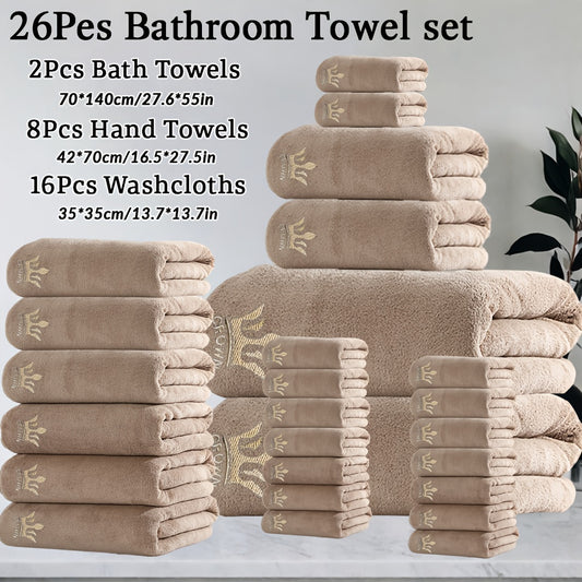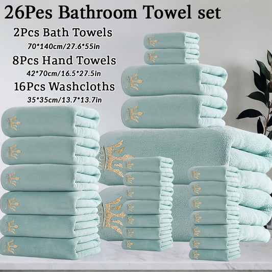 26pcs Bathroom Solid Embroidered Towel Set, Including 16 Square Towels + 8 Hand Towels + 2 Bath Towels, Made of Coral Fleece, Available in Multiple Colors, Soft And Comfortable, Good Water Absorption, Suitable for Fitness, Ba