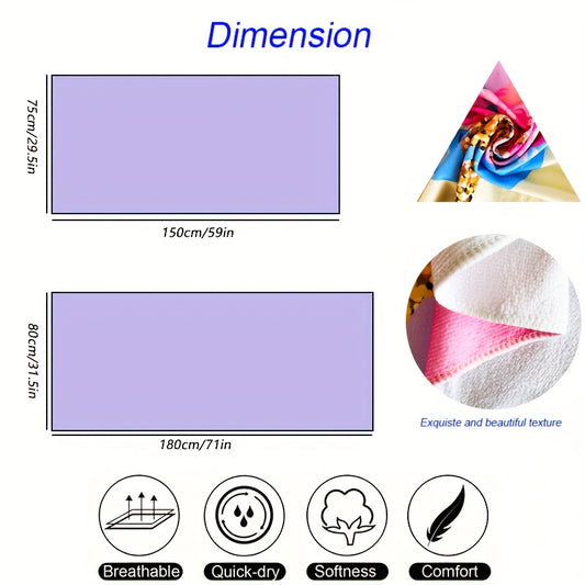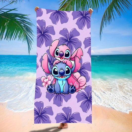 1pc Stitch Beach Towel - Soft Microfiber, Quick-Dry, Vibrant Purple & Pink Floral Design, Perfect for Yoga, Travel, Swimming, Fitness, Camping - Ideal St. Patrick'S Day Gift, Beach Accessories | Playful Design | Quick Dry Tow