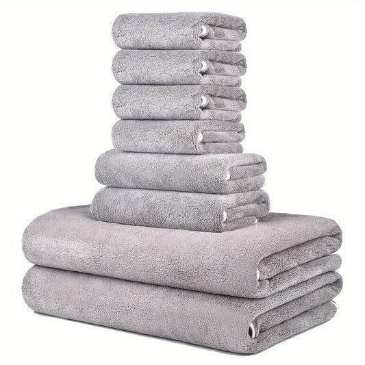 8-Pack Super Soft Coral Bath Towel Set, 2 Bath Towels 68.58 x 139.7 cm, 2 Hand Towels 34.8 x 76.2 cm, 4 Square Towels 34.8 x 34.8 cm, Quick Drying, Quick Absorbent and Lightweight, Outdoor Fitness, Camping Towels Bathroom Tow