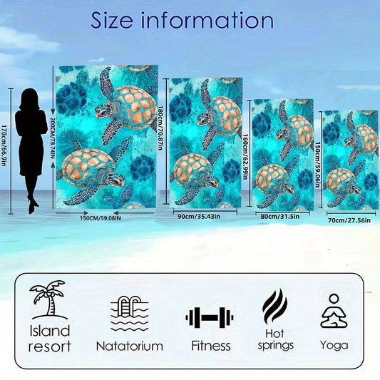 1pc Oversized Beach Towel with Vibrant Sea Turtle Ocean Print – Super Soft Quick-Dry Microfiber, Multi-Use for Yoga, Swimming, Fitness, Camping & Sandbathing, Beach Blanket, Yoga Accessory, Contemporary Style, Quickdry Fabr