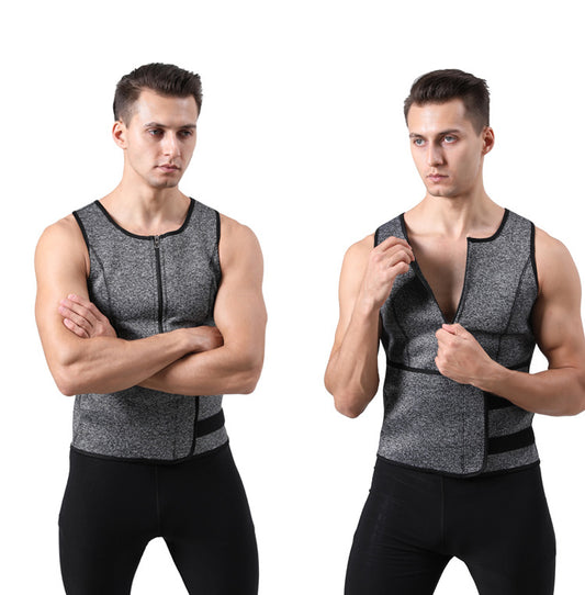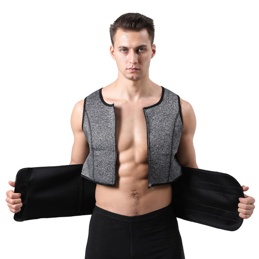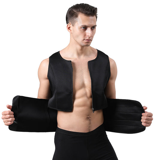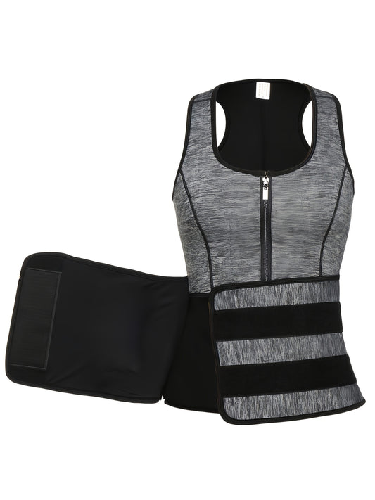 TKPARK Men's Adjustable Compression Tank Top & Waist Trainer - High-Elasticity Workout Shirt with Back Support, Sleeveless Gym Shaper Vest, Zipper Closure & Belt for Fitness Training, Fitness Compression Wear | Sleeveless Tan