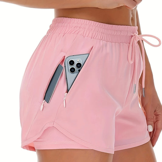 Women'S Casual Sports Shorts - Beige, Stretchy Lycra Fabric, Drawstring Waist, Multiple Pockets for Running and Fitness, Casual Sportswear|Casual Fit|Stretchy Fabric
