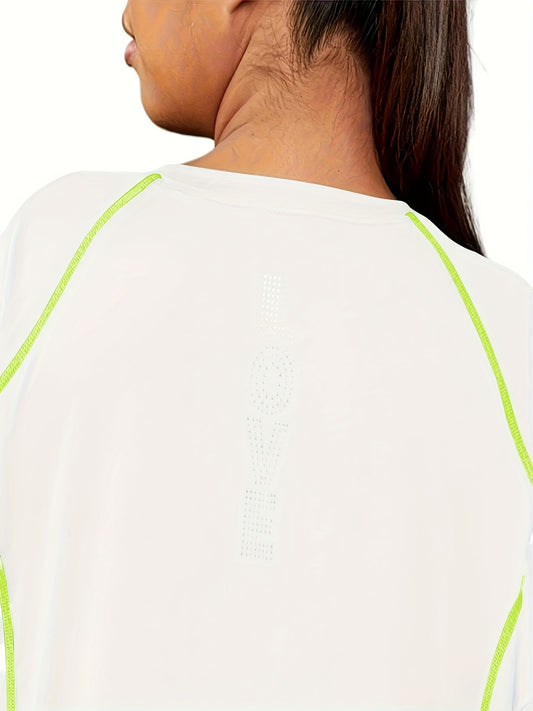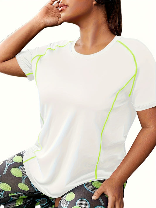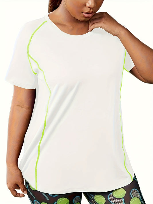 Plus Size Women's High-Elasticity Sport T-Shirt - Breathable Round Neck Short Sleeve Yoga & Studio Workout Top, Machine Washable Solid Color Athletic Tee, Workout Clothes, Gym Clothing, Casual Activewear, Durable Material, Pe