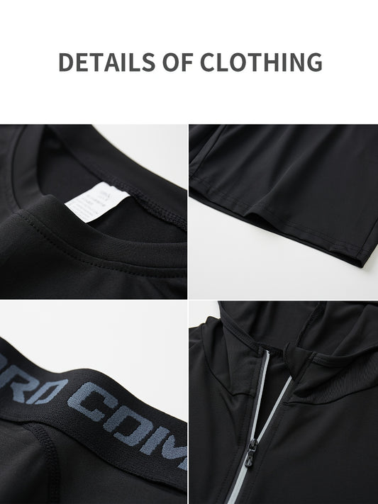Xinso Prince 5pcs Men's Zip Up Hooded Jacket & Compression T-shirt & Long Sleeve Workout Top & Shorts & Leggings For Fitness
