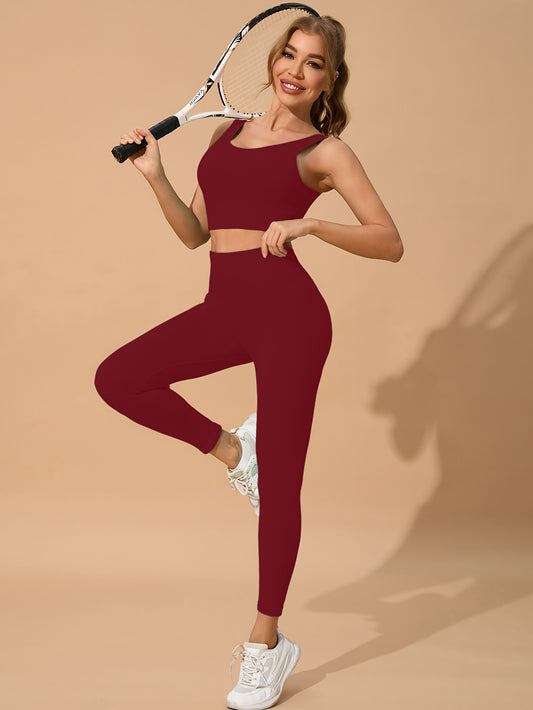 2pcs Solid Color High-Stretch Fitness Yoga Sports Leggings, Soft Breathable Yoga Tight Pants, Women's Activewear