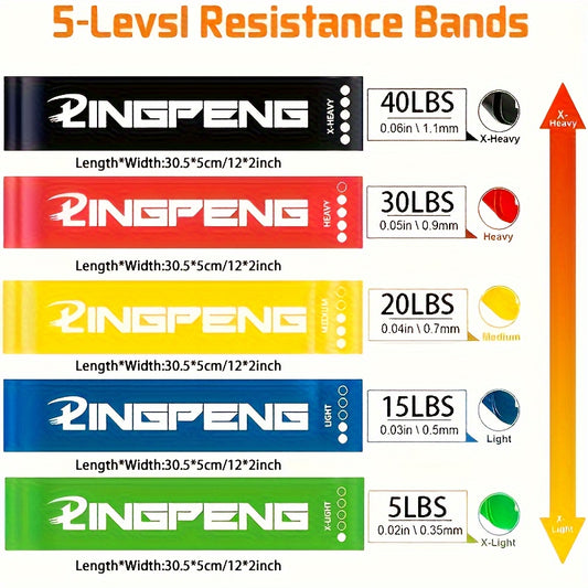 5pcs ZINGPENG Resistance Band Set for Men & Women - Color-Coded with 5 to 18.14 KG Tension Levels, Durable Latex Elastic Bands for Full-Body Workouts, Strength Training, Yoga - Easy Grip, Portable Fitness Equipment, Portable