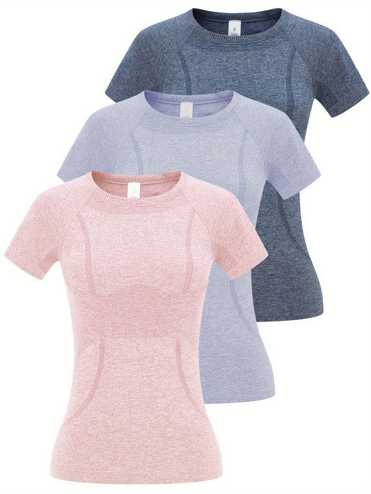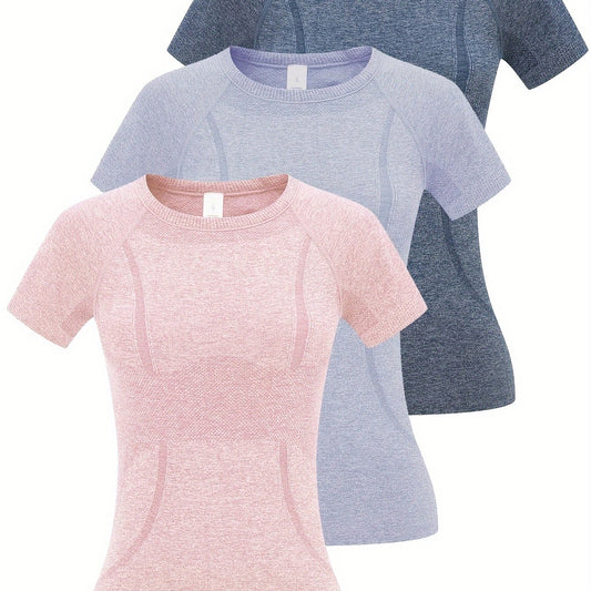 3pcs Women's Sports Fitness Running Top, Short Sleeve Quick-drying Breathable Comfortable T-shirt, Women's Clothing